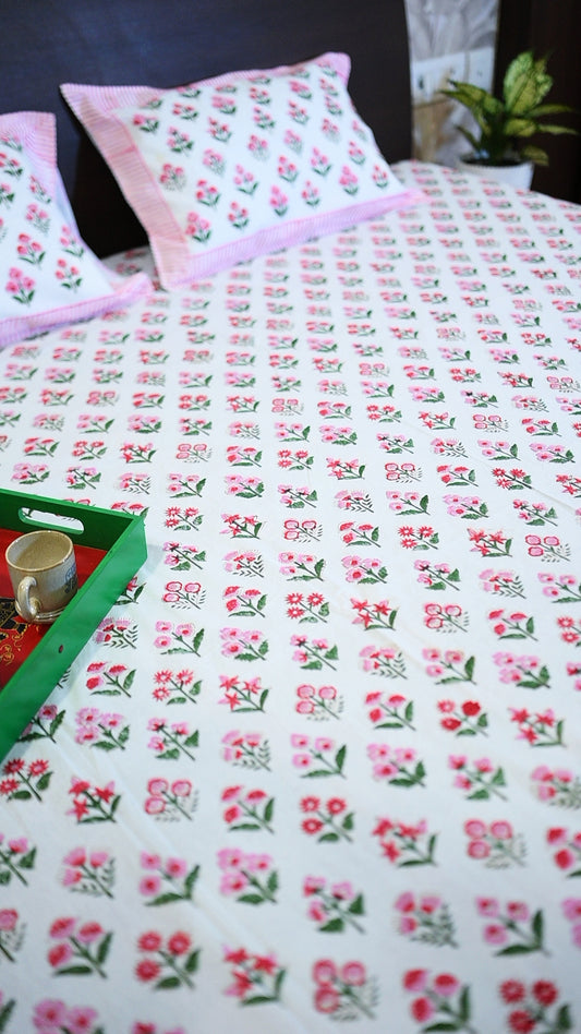 Whimsical Wildflowers Double Bed King Size Bedsheet with 2 Pillow Covers