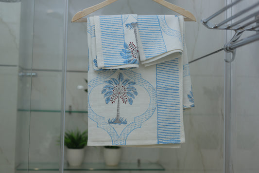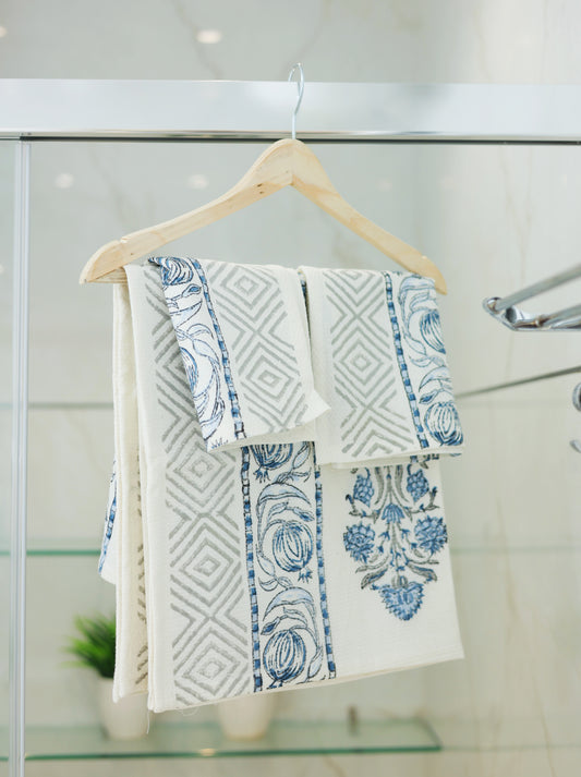 Handloom Harmony Blue Bath Towels and Napkin Set