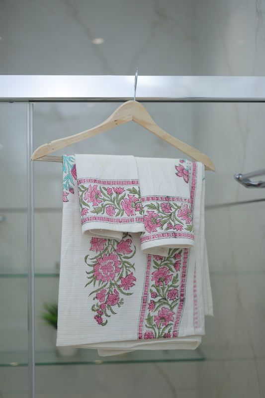 Delicate Pink Blossom Bath Towels and Napkin Set