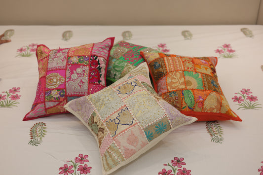 Nomadic Charm: Badmeri & Patchwork Cushion Cover