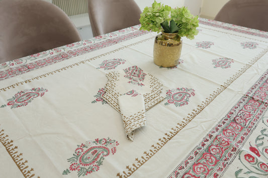 Artisan Elegance: Handblock-Painted Pink Dining Table Cover