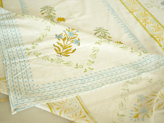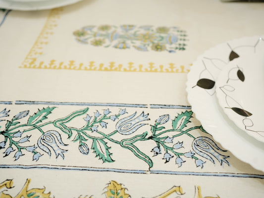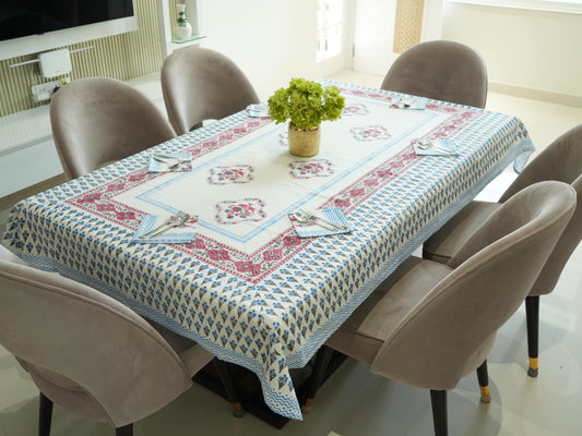Blue Hand-Block Painted Table Cover for Timeless Elegance
