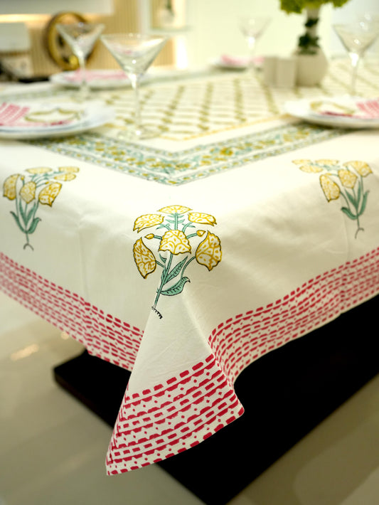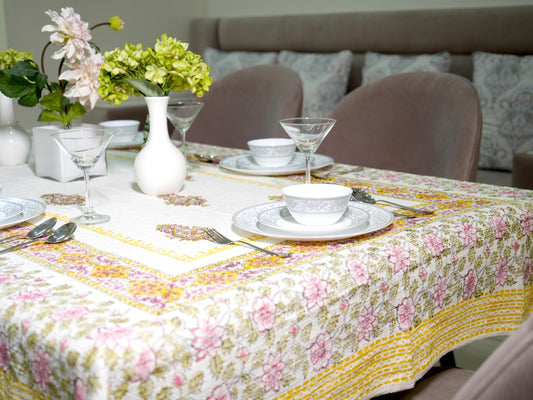 Pink and Yellow Floral Hand-Block Painted TNT Table Cover