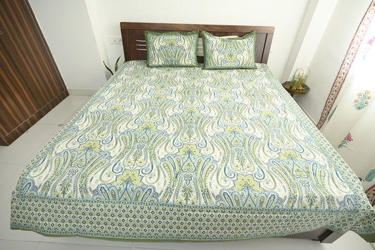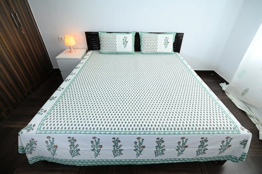 Floral Essence Green Double Bed Screen Print Bedsheet