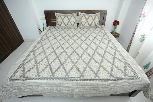 Grey Jaal Design Double Bed Screen Print Bedsheet