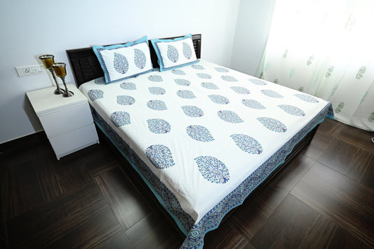 Jaipur Indigo Symphony Double Bed Screen Print Bedsheet