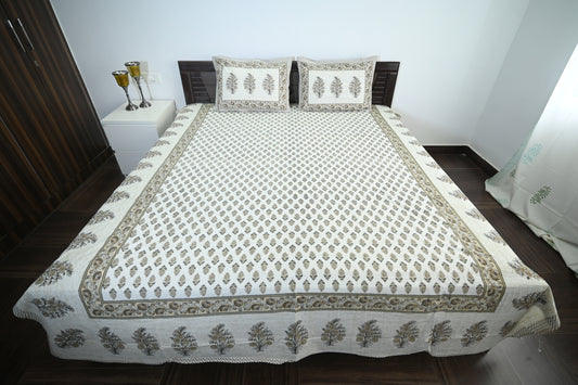 Jaipur Blossom Double Bed Screen Print Bedsheet