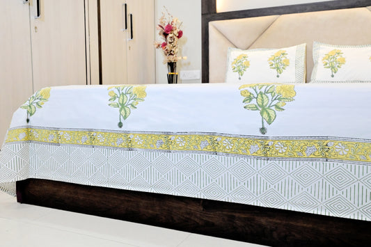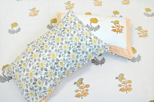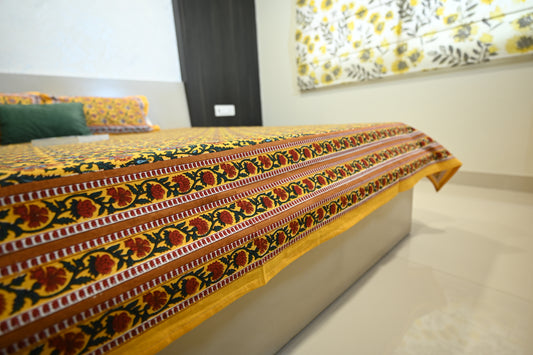 Marigold Charm Double Bed Super King Size Bedsheet Super Premium Cotton Fabric with 2 Pillow Covers