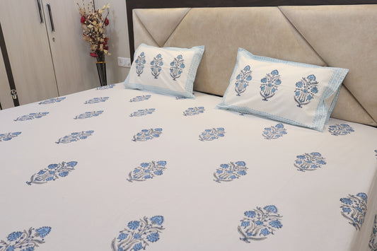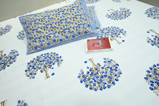 Indigo Infusion Double Bed Super King Size Bedsheet Premium Fabric with 2 Pillow Covers