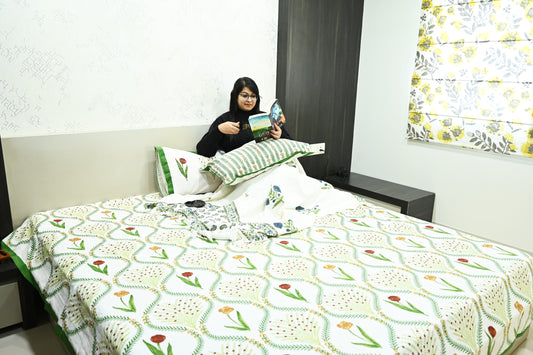 Introducing our Jaipur Collection Bedsheets: crafted with care and dedication, epitomizing comfort and style. Made from premium fabric, each meticulously handcrafted using traditional techniques. Our artisans infuse love and expertise, ensuring impeccable craftsmanship and eco-friendliness with natural colors. Luxuriously soft, perfect for unwinding, unmatched comfort and machine washable. Experience Jaipur's charm in your bedroom with sizes available for king and super king beds. Tradition meets modern comfort; every thread tells a story of heritage and craftsmanship.