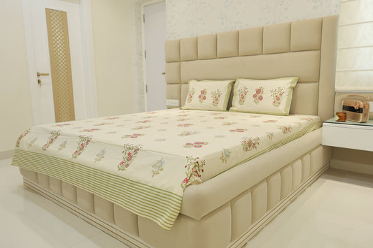 Garden Delight Double Bed King Size Bedsheet with 2 Pillow Covers