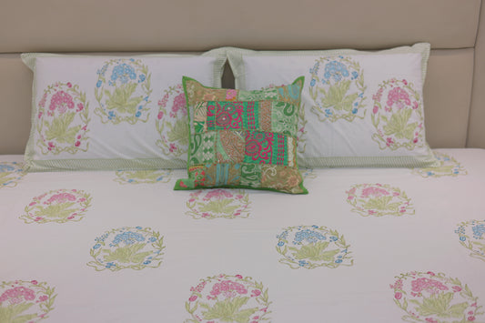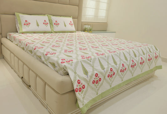 Meadow Magic Floral Double Bed King Size Cotton Bedsheet with 2 Pillow Covers
