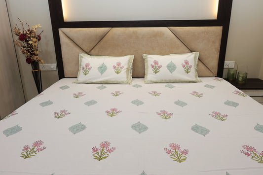 Blush Bloom Double Bed King Size Bedsheet with 2 Pillow Covers