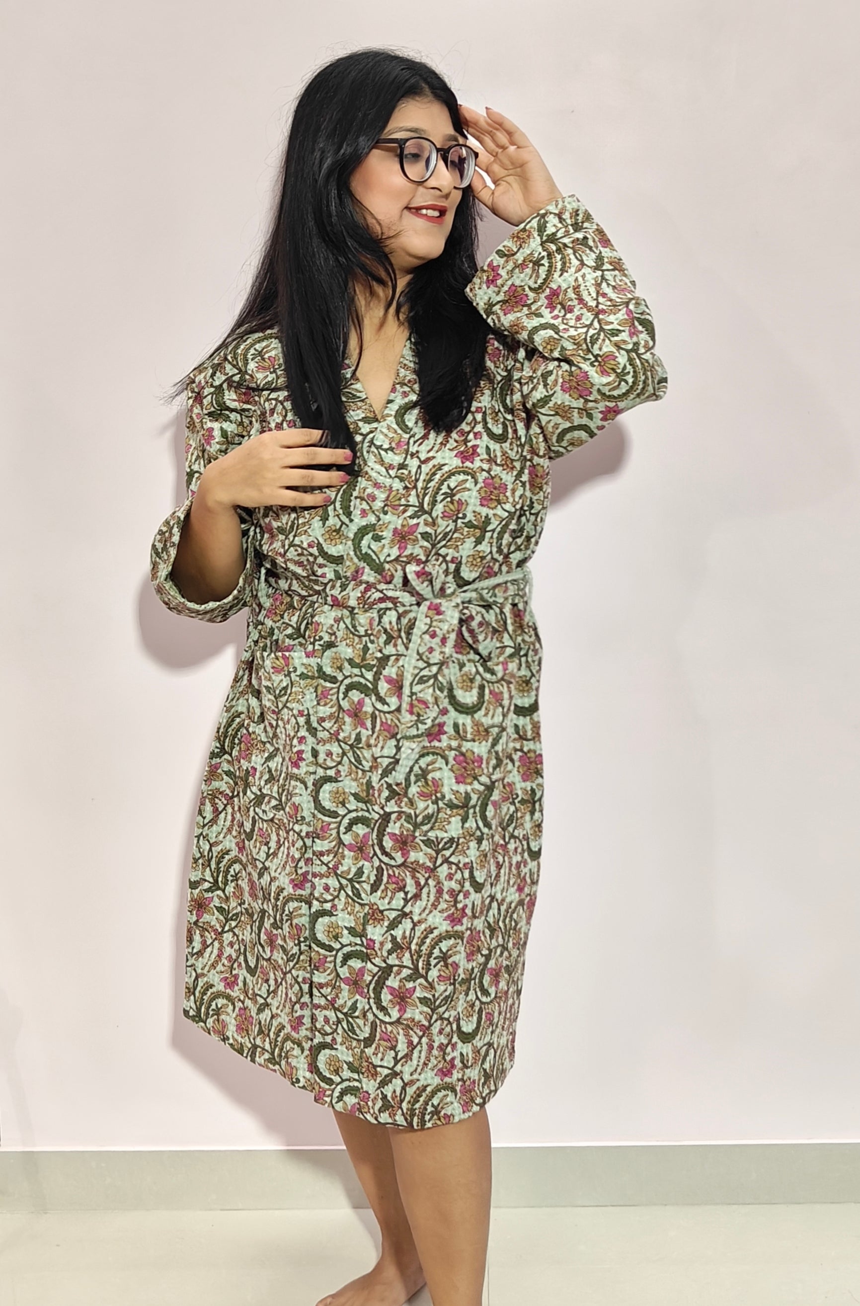 Get ready for cozy and stylish vibes with our women's bathrobes. Our bathrobes are made from really good cotton and have a comfy waffle texture, making them great for travel and everyday use. Check out our pretty and colorful designs, perfect for giving as a special gift, especially for bridesmaids. These super-absorbent bathrobes are not just practical but also add a cool touch to your self-care routine. Whether you want a sweet gift or matching robes with your BFF, our bathrobes are all about feeling comfy and looking good. Start shopping now for the perfect mix of luxury and usefulness!
