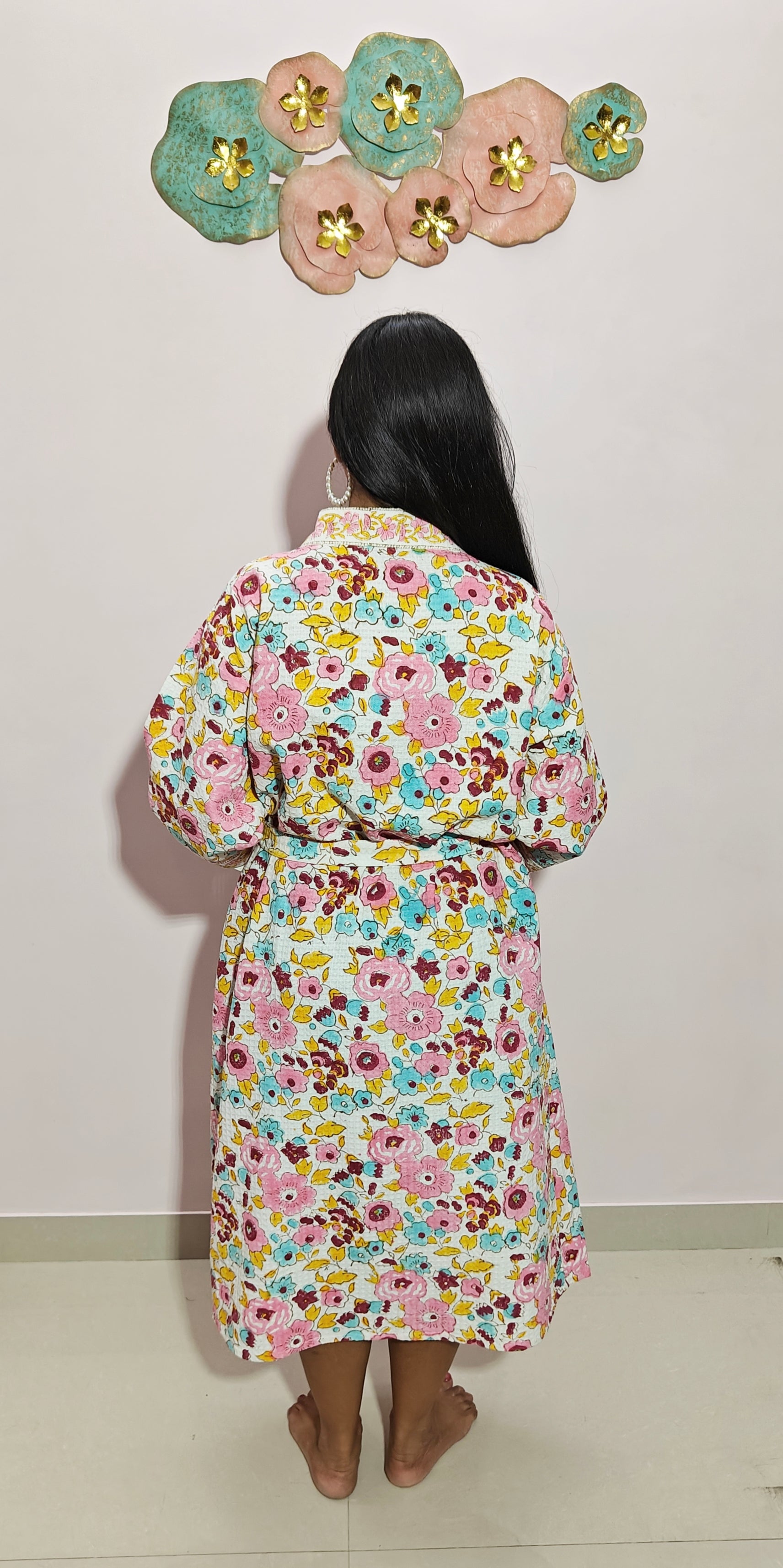 Wrap yourself in luxury with our colorful waffle fabric bathrobes, designed for comfort and style wherever you go. Made from highly absorbent, quick-drying material, these floral bathrobes are perfect for travel, beach vacations, destination weddings, or simply lounging at home. Lightweight and breathable, they pack easily, making them an ideal robe for everyday use or gifting. Elevate your self-care routine with these attractive waffle robes that blend fashion with function.