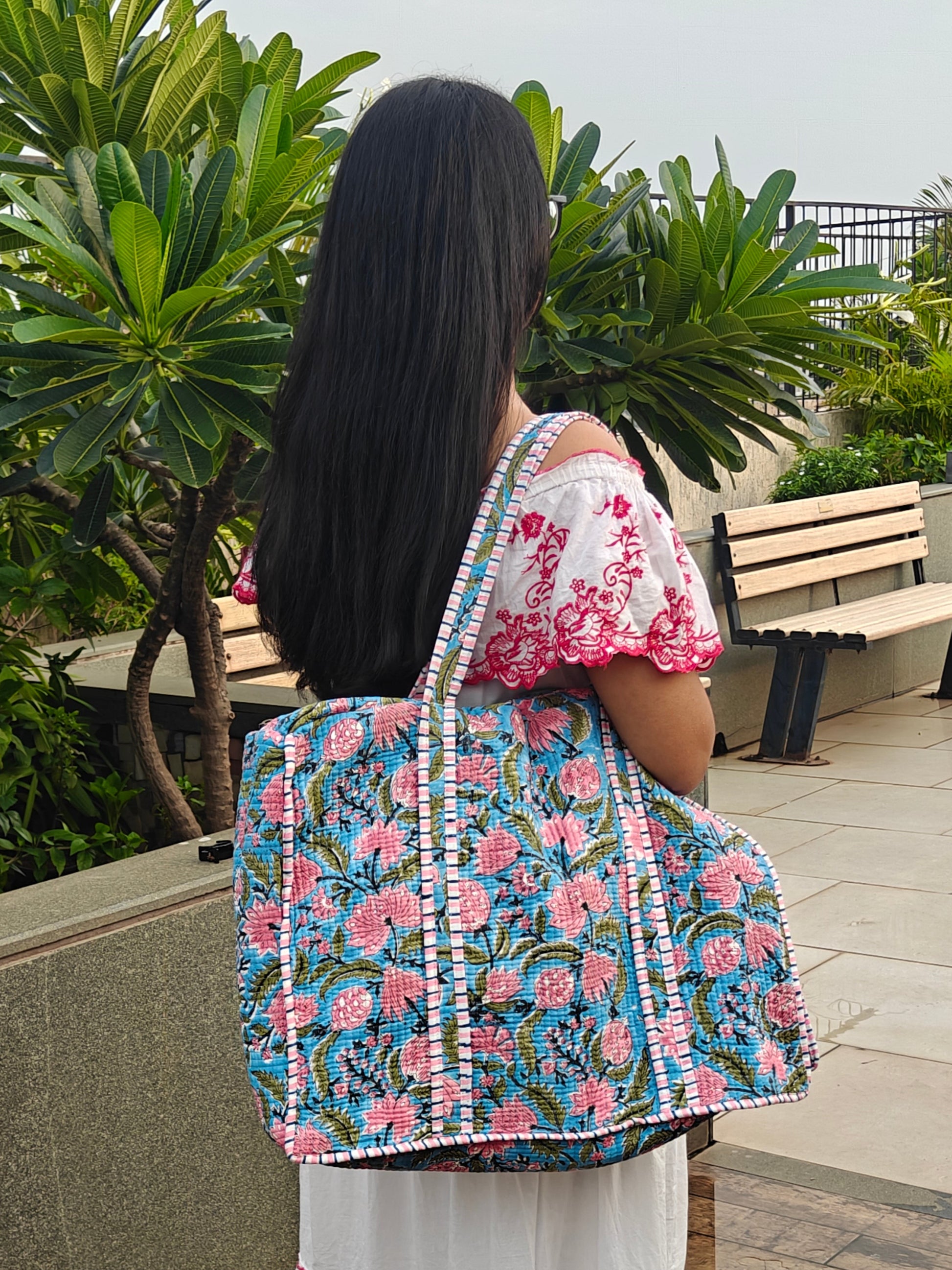 Elevate your everyday style with our premium handblock printed quilted cotton tote bag. Crafted from high-quality cotton, this spacious 14x20 inch tote bag is both stylish and functional—perfect for daily use, travel, beach days, shopping, or office essentials. The soft yet durable quilted cotton fabric adds an extra layer of protection, while the sturdy shoulder straps ensure all-day comfort.